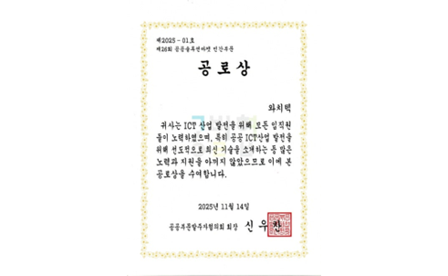 와치텍 공공 ICT 산업발전 " 공로상 수상 "